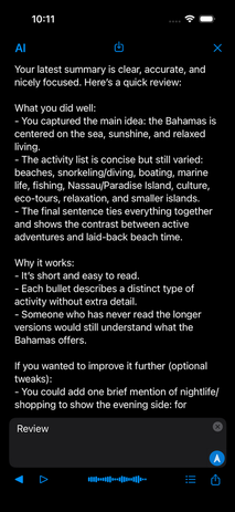 Effortlessly share your edited documents directly from Bookmark Write using the iPhone's share feature. Share your polished text via Messages, Mail, AirDrop, and more.